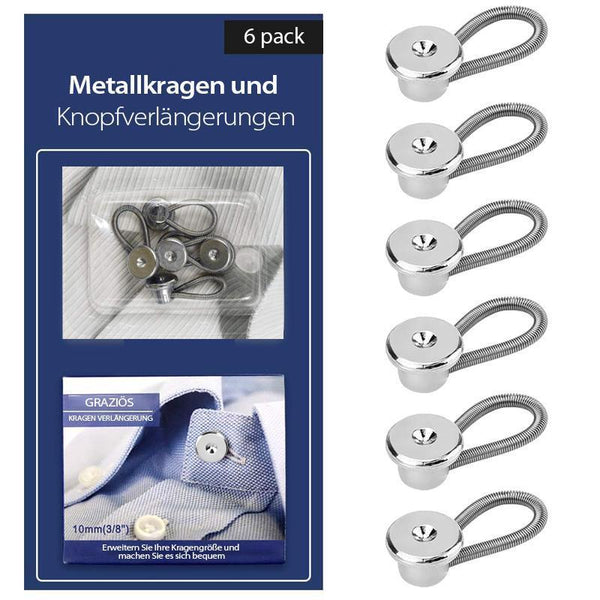 • Einfach zu bebutzen: Wird in weniger als 5 Sekunden angebracht. Es ist kein Nähen erforderlich, um unsere Metall-Hemdkragenverlängerungen an Ihrem Hemd zu befestigen! Schlingen Sie einfach einen um Ihren Hemdknopf oder verketten Sie ein Paar, um noch mehr Platz zu schaffen.