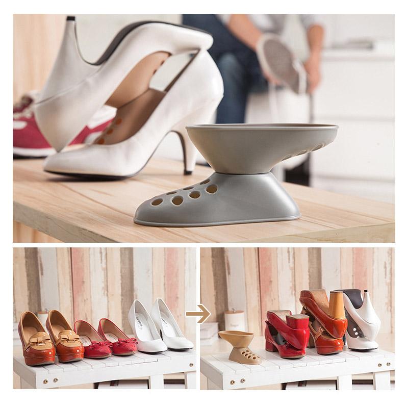 Gibt es keinen Platz für Schuhe? Probieren Sie unser verstellbares kreatives Schuhregal, zwei Ebenen darüber und darunter.
