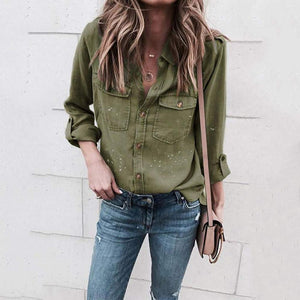 - 1 * Tasche Drucken Turn-Down-Kragen-Hemd