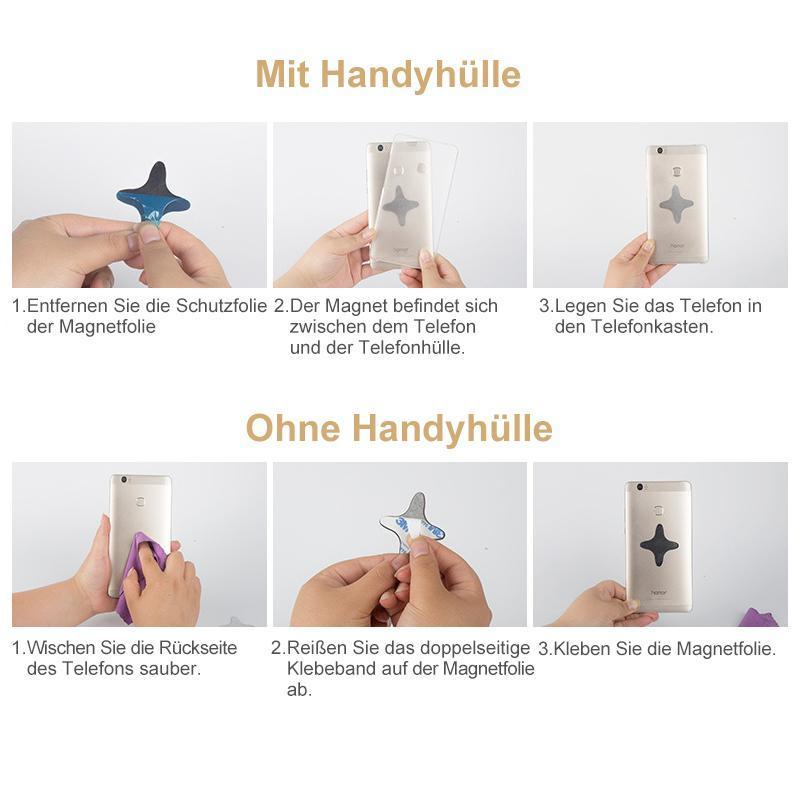 Vor der Benutzung kleben Sie bitte die Magnetfolie auf der Rückseite des Handys.