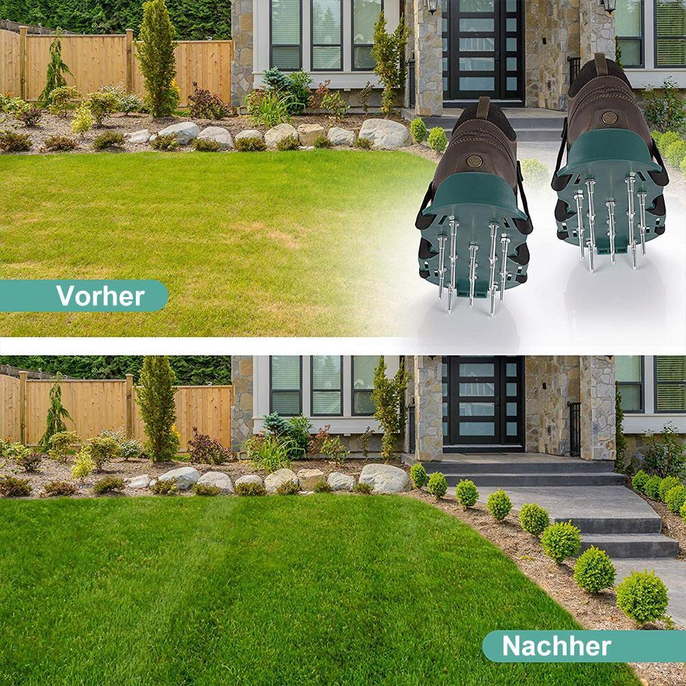 • Einfacher und effektiver Rasenbelüfter: Unsere Rasenbelüfter-Schuhnägel sind mit 26 robusten Metallspikes von 4,5 cm Länge ausgestattet. Die Rasenschuhe lassen sich leicht und schnell in den tiefen Boden stechen und helfen dem Gras, Wasser, Nährstoffe und Luft aus den tiefen Wurzeln aufzunehmen Ihr Rasen ist grüner und gesünder.