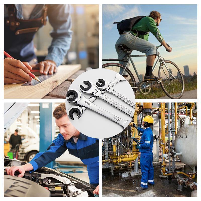 Wenn der normale Schraubenschlüssel im Flugzeug verwendet wird, kann der Finger nicht unter den Schraubenschlüssel greifen. Der Rohrratschenschlüssel ist praktischer, um die Ebene zu erfassen und mit Kraft zu beaufschlagen.