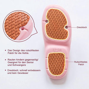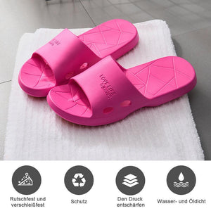 Die Pantoffeln sind sehr sanft und wenn man die Pantoffeln tragt, kann man sich sehr bequem fühlen. Der Muster der Sohle ist sehr rutschfest. Deswegen sind die Pantoffeln geeignet für das Badezimmer. Man kann das Fallen vermeiden und das ist sehr sicher und günstig.
