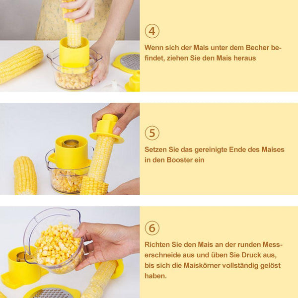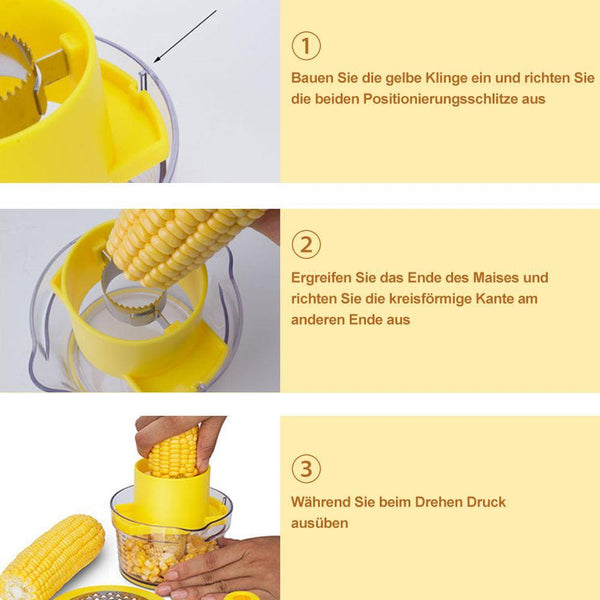 6. Richten Sie den Mais an der runden Messerschneide aus und üben Sie Druck aus, bis sich die Maiskörner vollständig gelöst haben.