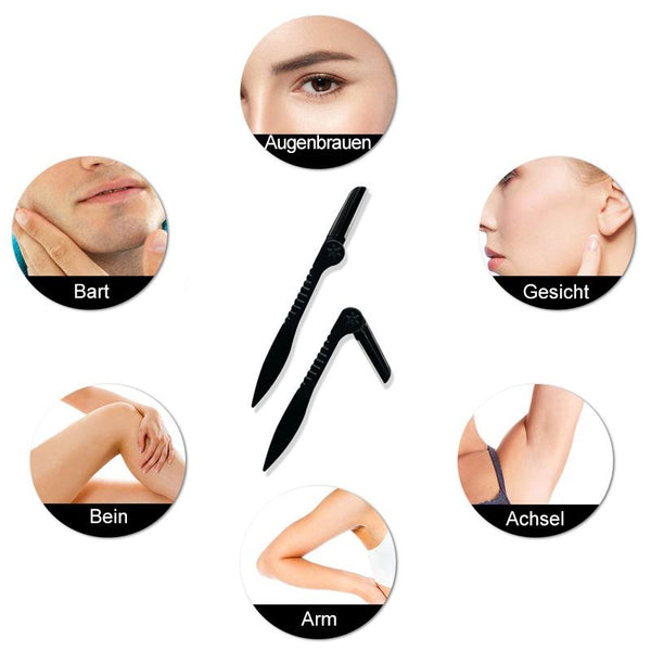 Faltbare Schutzklingen: Die Klinge, die so weich ist, dass sie nicht einmal einen Ballon zum Platzen bringt, lässt sich bequem ein- und ausklappen. Bei Nichtgebrauch kann die Klinge nach innen geklappt werden. Wenn Sie bereit sind, ziehen Sie einfach den oberen Teil nach oben, um Ihre Augenbrauen jederzeit zu formen.