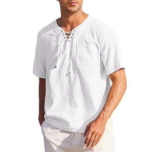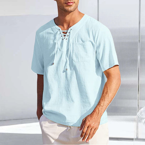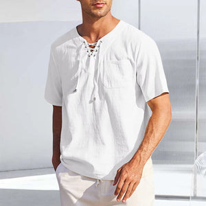 Schnürhemd aus Baumwolle und Leinen