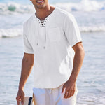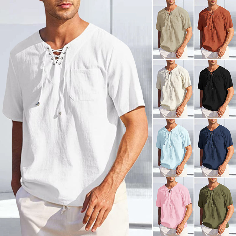 • 🧃 Stilvolle Hemden: Klassische Passform und minimalistisches Design. Dieses leichte Baumwollhemd mit elegantem V-Ausschnitt, Schnürung und Retro-Design wird mit Sicherheit eines Ihrer Lieblings-Freizeithemden.