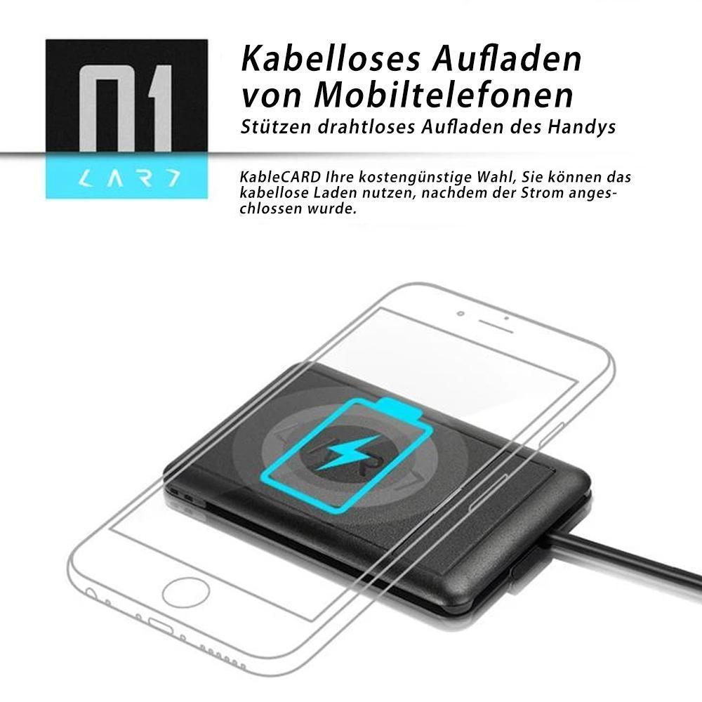 • Unterstützung für kabelloses Aufladen von Mobiltelefonen KableCARD unterstützt kabelloses Aufladen. Das kabellose Aufladen kann je nach Bedarf nach dem Anschließen des Stroms, kabellos oder verkabelt durchgeführt werden. Kabelloses Laden im vertikalen Modus