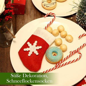 • 🎅Süße Dekoration: Unsere Mini-Weihnachtssocken aus Schneeflockengeschirr schmücken Weihnachtsgeschenke und -leckereien im klassischen Weihnachtsstil. Sie können mit allem gefüllt werden, was Sie wollen, wie Besteck, Messer, Löffel, Gabel, Süßigkeiten, Geschenke.